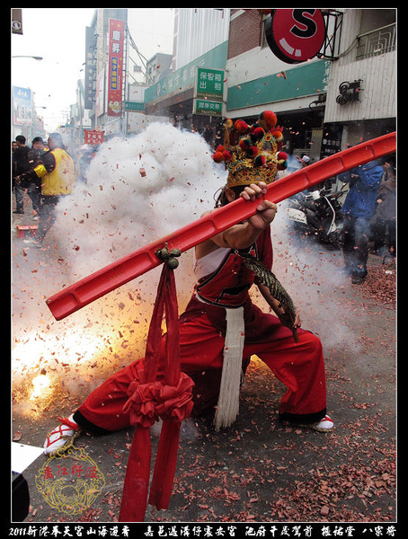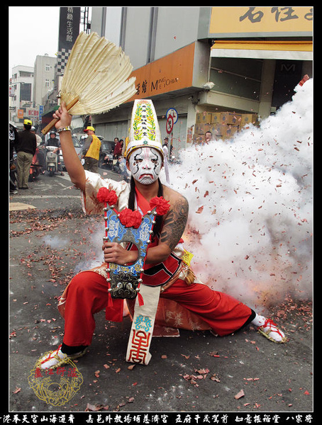 之後就轉往過溝仔震安宮看媽祖出發~以下的幾張圖除了在大天宮有振祐堂座炮~其他就是家將們經過外教場埔慈濟宮前所拍的座炮~